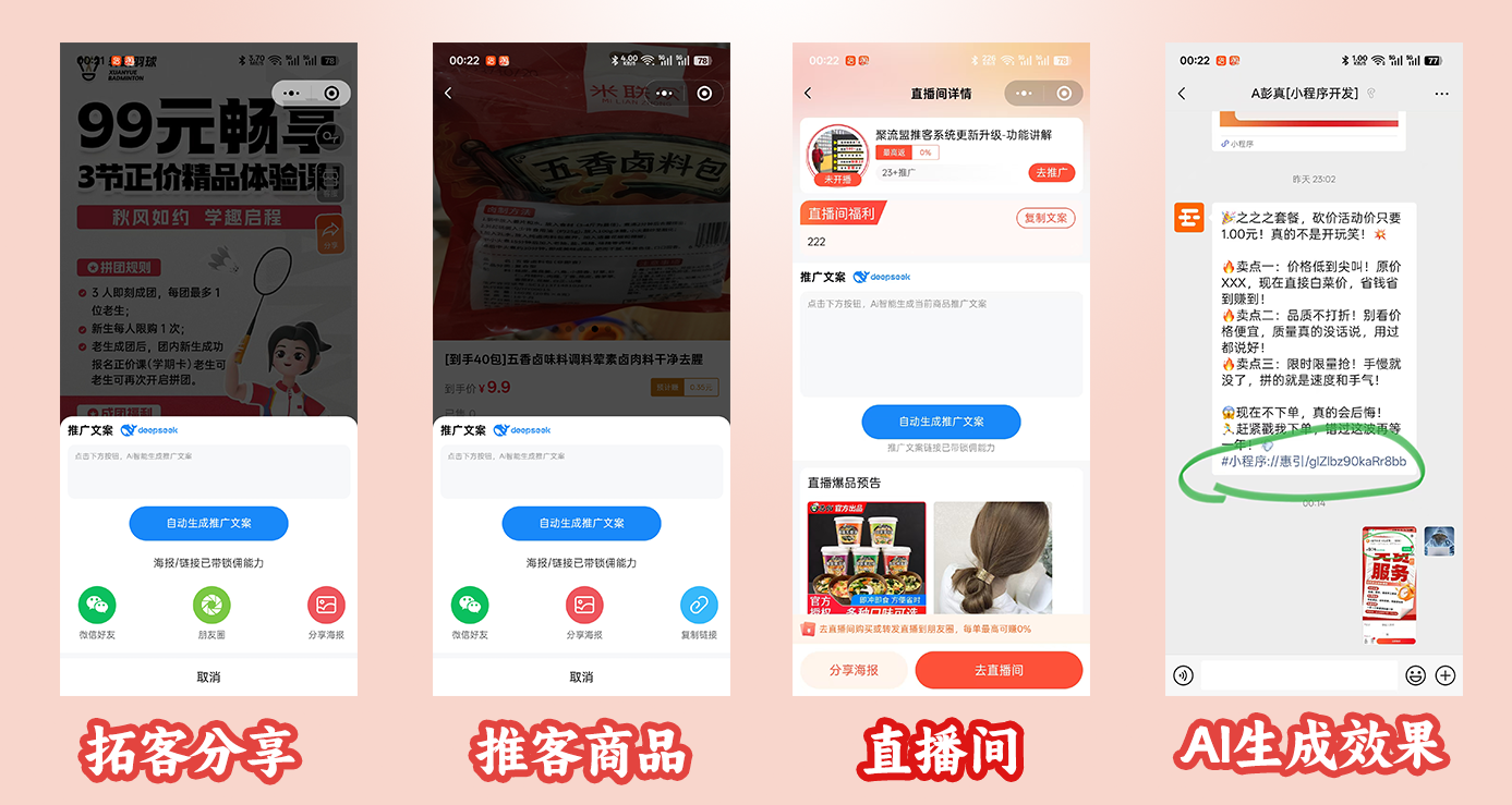 分享自动写朋友圈文案带关系链接。活动标题、封面图、一键生成拓客链接(