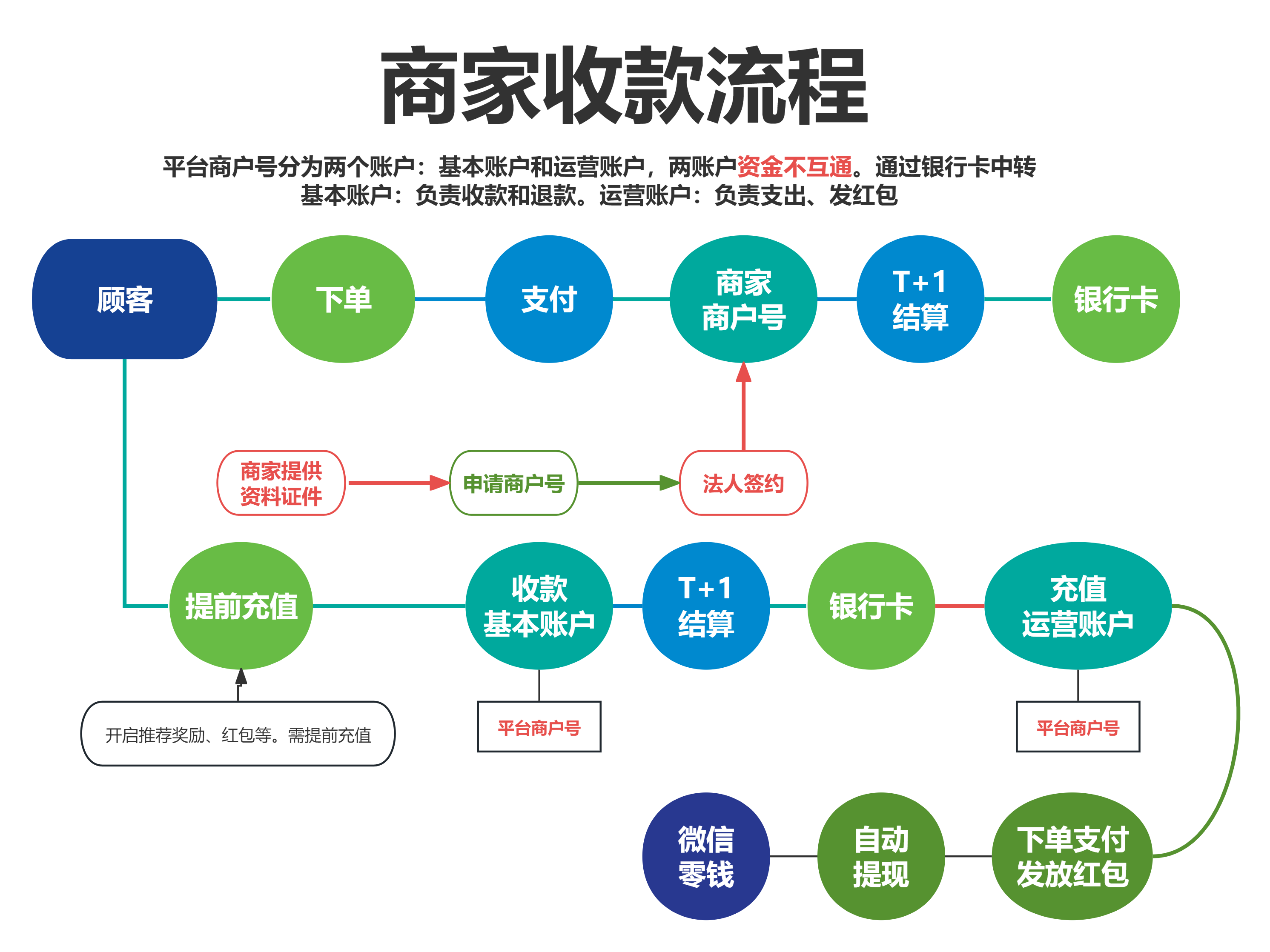 商家收款指平台协助商家开通独立商户号,由商家通过该商户号直接收取货款,资金不经过平台账户,直接进入商家自有账户的结算模式。该模式核心特征在于“资金流独立”——平台仅提供商户号申请及技术对接服务,不参与资金留存与划转,货款全程由商家自主管理,有效保障商家对资金的直接控制权,同时规避平台资金池风险。